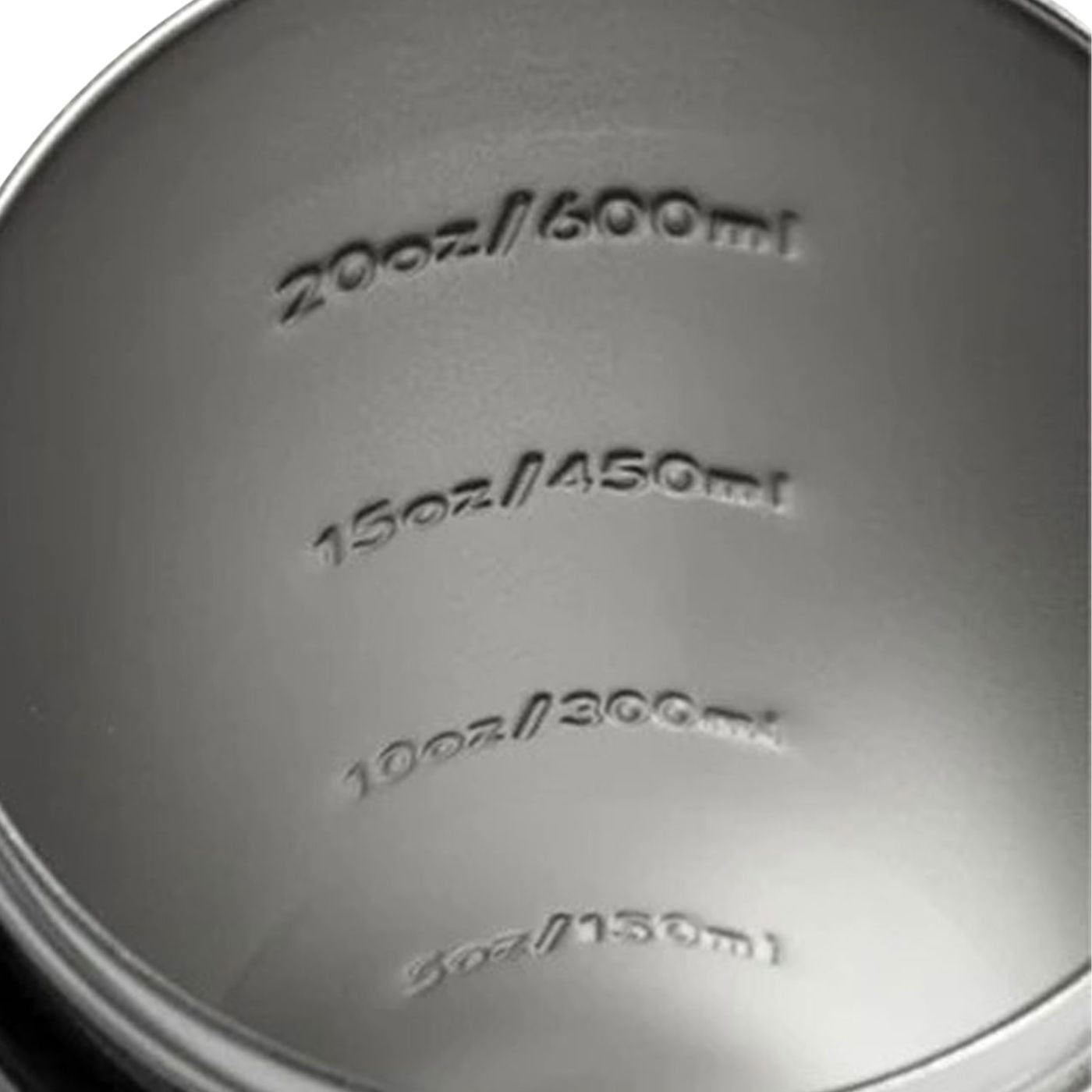 Made from 100% recyclable stainless steel that outlast plastic and will not absorb odors with internal 5oz, 10oz, 15oz, & 20oz measurement lines that will never fade or chip away.