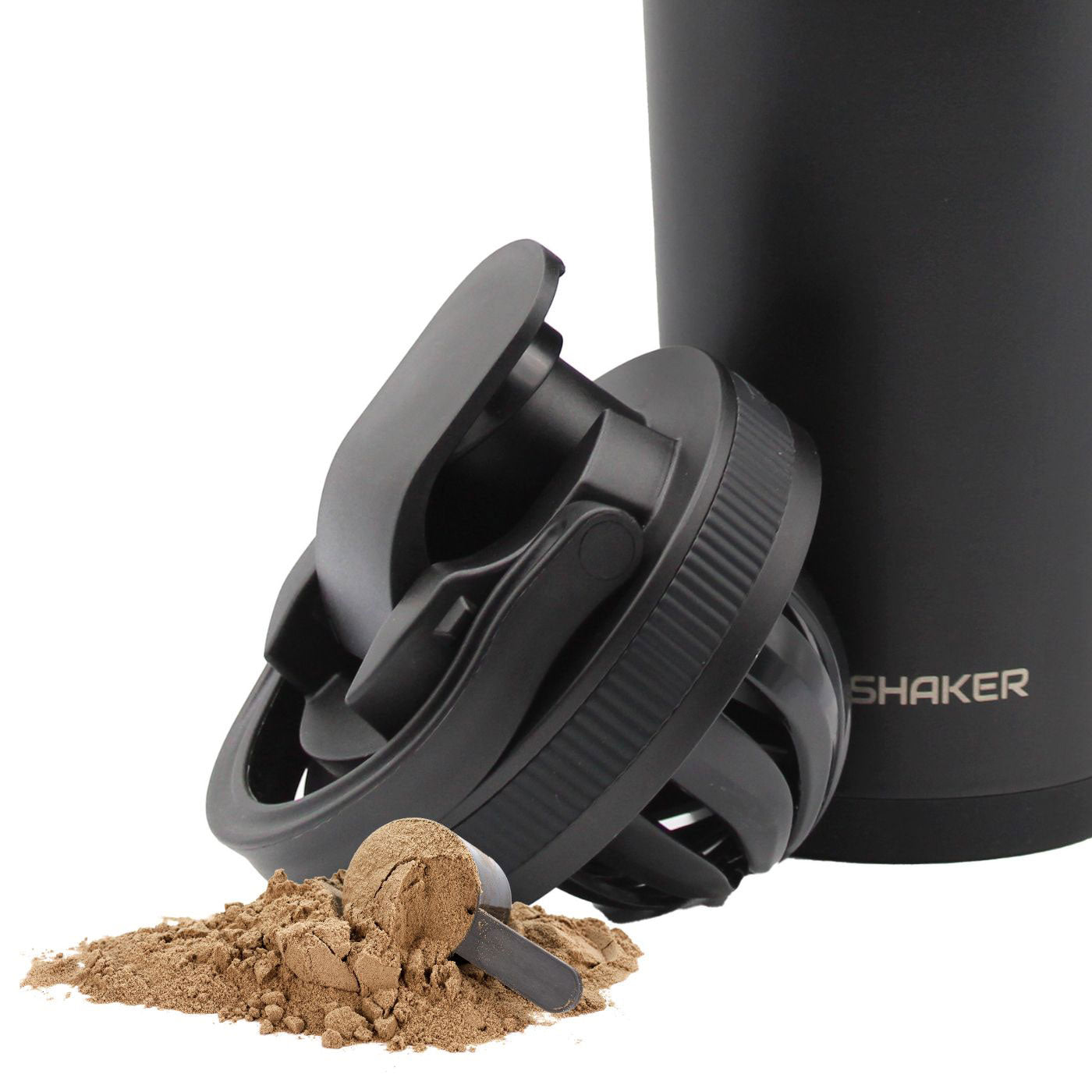 The 32oz Ice Shaker features a patented, noise-free twist-on agitator that is designed to blend protein powders and work as a strainer to ensure a perfect drink every time. Constructed from premium, kitchen-grade stainless steel, the 32oz Stainless Steel Bottle will not absorb odors and is double wall vacuum insulated to keep your drinks cold for hours and prevent condensation from building up on the outside of the bottle. For easy measuring, the 32oz shaker bottle is equipped with internal measurement lines that will never chip or fade away. The premium silicone base prevents your Ice Shaker from sliding, chipping, and makes the cup less noisy when setting it down while the tapered base fits in most cup holders. Stop dealing with smelly plastic bottles that don't keep your drinks cold and shake things up with Ice Shaker's 32oz Shaker Bottle!