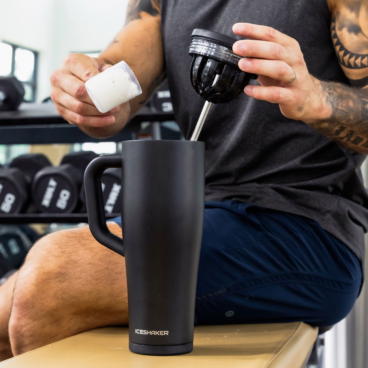 Crush your workouts and stay fueled all day with the Ice Shaker 40oz Legend Series Shaker Bottle—built for legends who don’t settle. Featuring a patented twist-in agitator, it delivers ultra-smooth protein shakes, pre-workouts, and smoothies with zero clumps or residue. The double-wall vacuum insulation keeps your drinks ice-cold for over 30 hours, making it perfect for the gym, work, or travel.