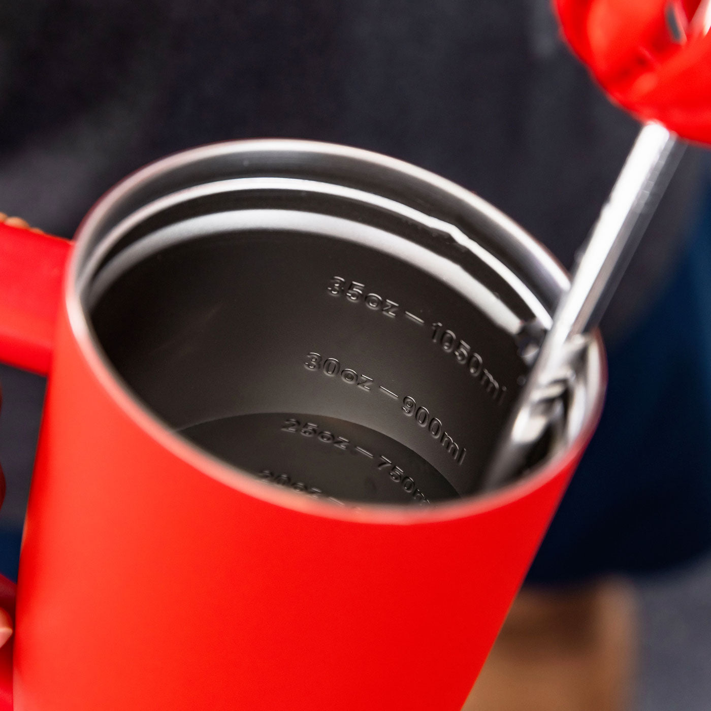 Crafted from kitchen-grade stainless steel, it’s leak-proof, BPA-free, and tough enough to handle any grind. The center-aligned straw and soft-touch handle make it effortless to sip whether you’re left- or right-handed, and with easy-to-read measurement markings, a silicone spout, and a silicone base, it’s as easy to clean as it is to dominate your day.