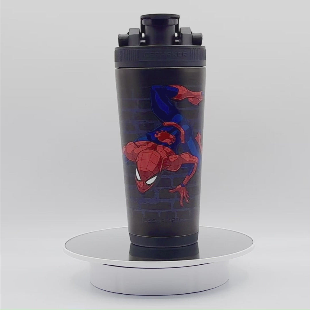 Unleash your inner superhero with the Marvel Spiderman "With Great Power.." 4D Ice Shaker! Wrapped in our exclusive, high-quality Spider-Man 4D graphics, this shaker bottle is as durable as it is stylish. Made from premium stainless steel, it keeps your drinks ice-cold for over 30 hours and is 100% leak-proof, ensuring no mess in your gym bag. Featuring Ice Shaker’s patented agitator for a smoother mix, this bottle is the perfect companion for workouts, adventures, and everyday hydration. Get yours today and bring a little Marvel magic to your routine!