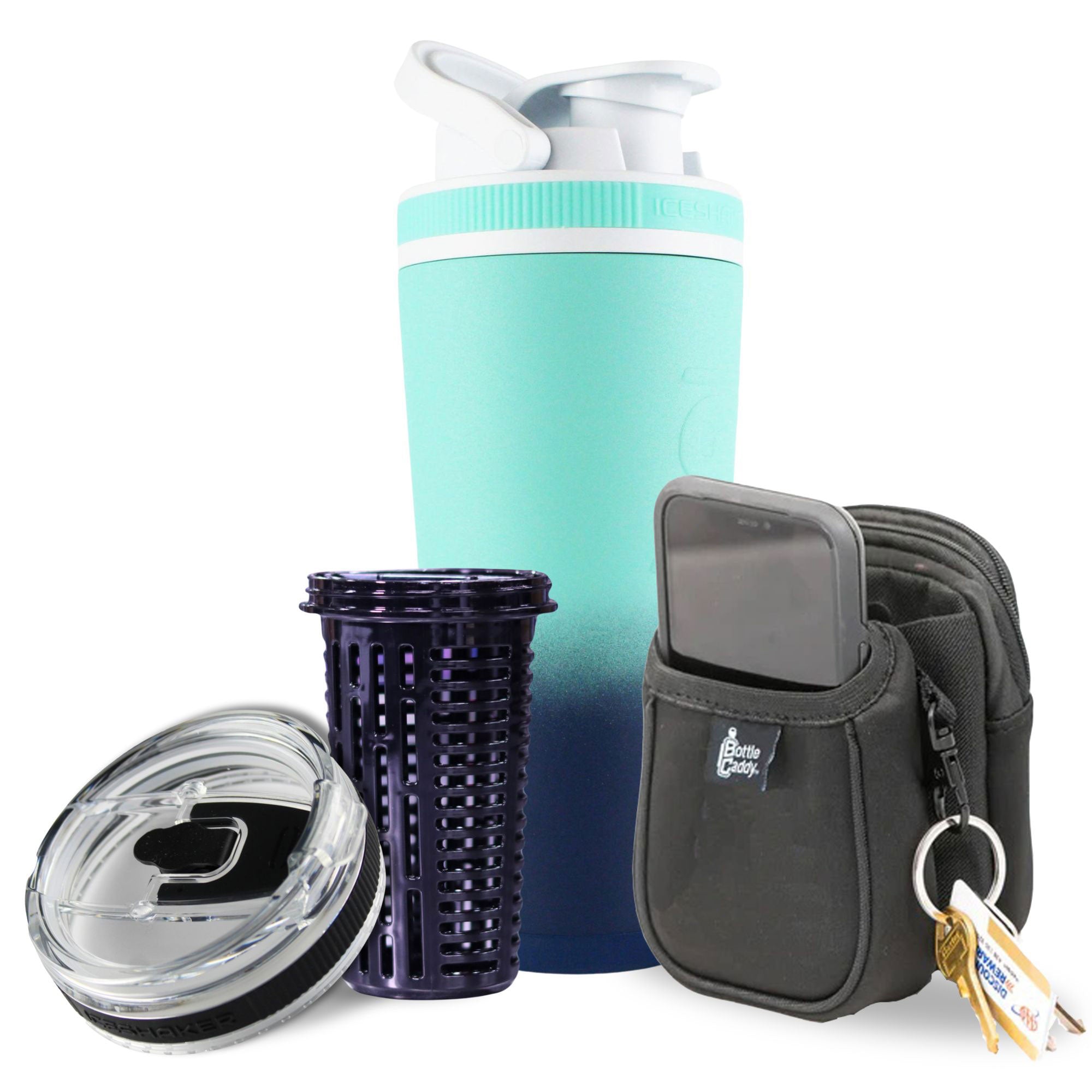 - 1 Bottle Caddy that slips onto the Ice Shaker & allows you to store your keys, phone, debit card, etc.