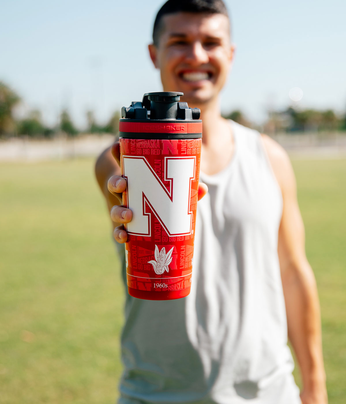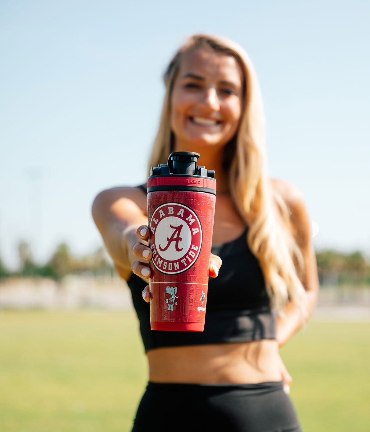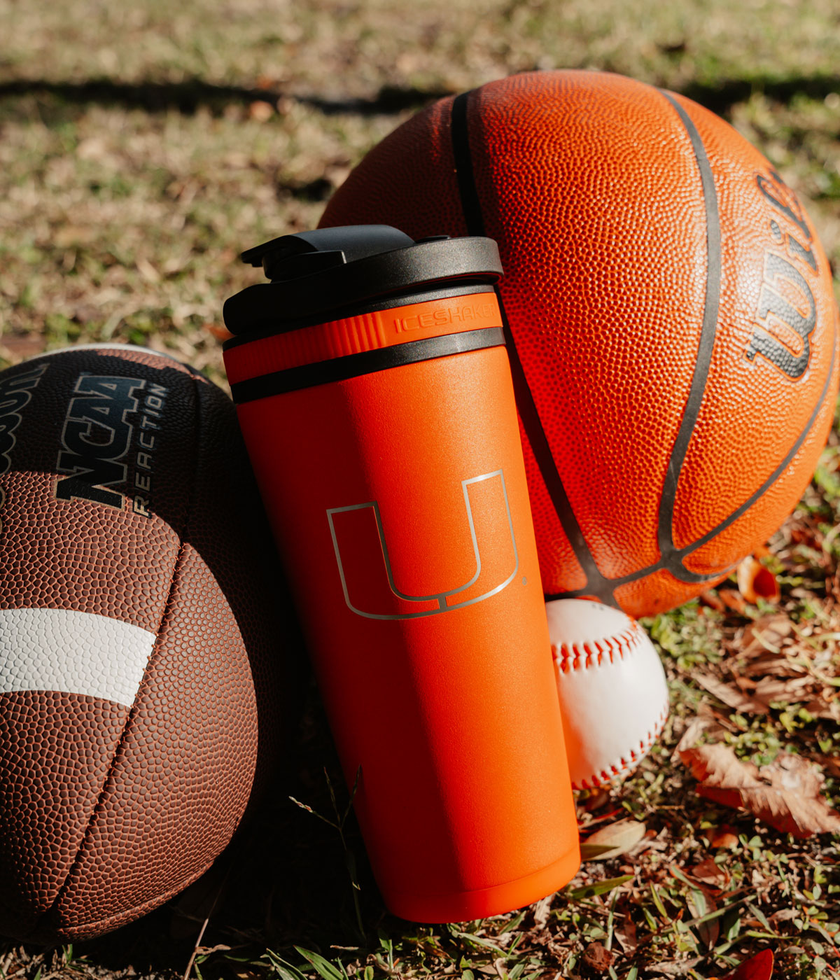 NCAA Shaker Bottles come with a durable handle built into the lid for added convenience and easy travel while the base of the bottle fits in most cup holders.