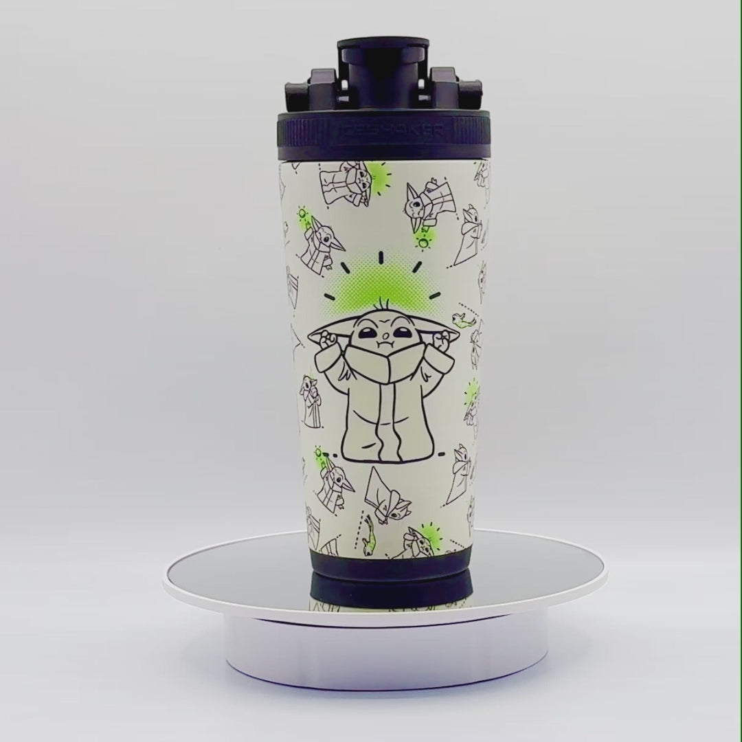 Join the hunt with The Mandalorian Grogu 4D Ice Shaker! Featuring our exclusive Grogu "Stronger Than You Think" 4D wrap inspired by the hit Star Wars series, The Mandalorian, this stainless steel shaker keeps drinks ice-cold for 30+ hours and is 100% leak-proof. Equipped with Ice Shaker’s patented agitator, it ensures a smooth, lump-free mix every time. Whether you're training like a Mandalorian or just need reliable hydration, this bottle is a must-have for any fan of the galaxy far, far away.